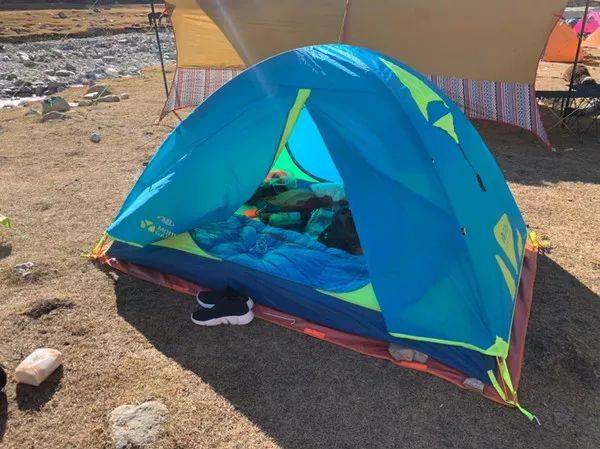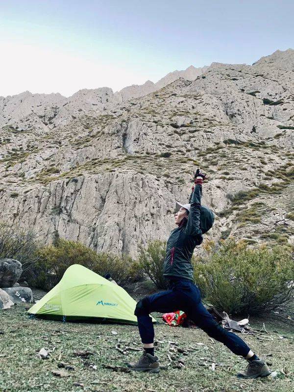 今天算是到营地比较早的,趁着自然光线,好好收拾打理一下,拉伸一下,我觉得我算是山里比较讲究得了,哈哈哈,还每天卸卸妆,有时间就会刷牙,要享受生活啊~我超级喜欢我的大帐篷,一个人很容易搭起来,而且一半放东西一半睡觉,带发。