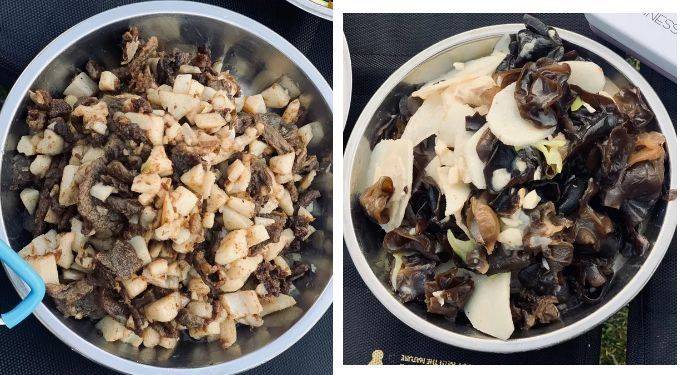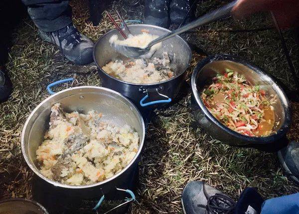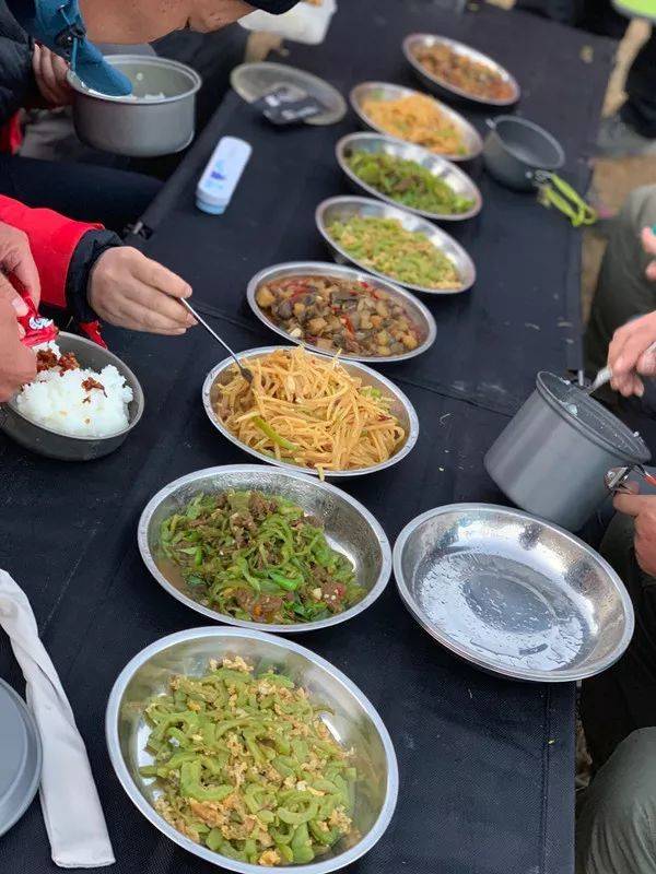 每次晚饭前的天幕聚会时间,大家一起流着口水盯着山队一道一道的炒菜。
