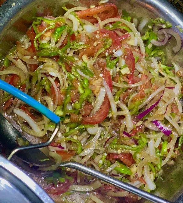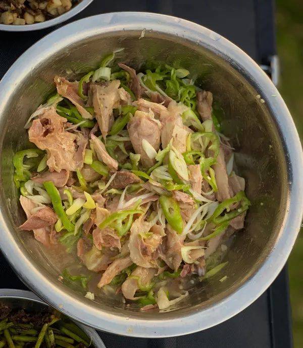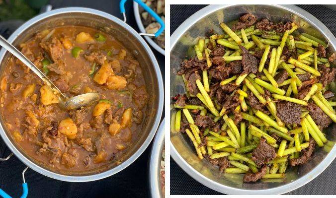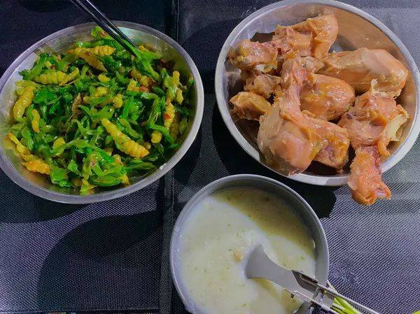 这个是新疆大盘鸡,在家里厨房我都做不出来这种,在山上那么艰苦的条件和紧张的时间,我真的是太佩服,是的,我不喜欢做饭,哈哈哈哈哈,所以会做饭的我都崇拜。
