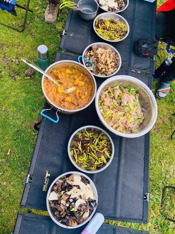 啧啧啧,没话夸了,就看着吧,最后一顿营地餐,超级超级丰盛,我们每个队员都吃的肚子圆圆~每次做饭的时候,我们都围坐在旁边虎视眈眈,菜一齐开饭,我们个个吃的都像饿狼一样,哈哈,那个感觉很幸福。