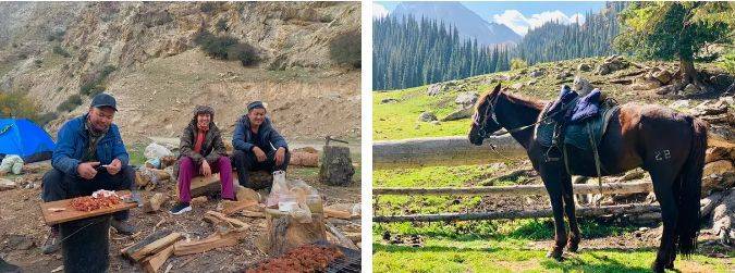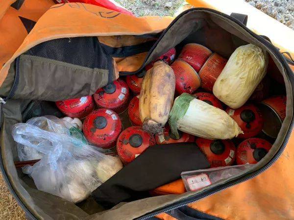 做饭的气罐和新鲜的蔬菜,都是靠马匹背上来的~辛苦了,马马们。