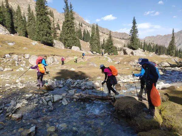 乌孙是水路最多的一个户外徒步线路,每年都因为有因为过河发生的意外,我们这趟是天气好,9月份天气渐凉,雪水融化的少,所以水量比较小,过河的难度不大,如果有暴雨或者六七月份,水流大的时候到山队的腰部,而且水是浑浊的,最严重的的时候是黑色的水花在翻腾,听着就很可怕的,谢谢我的好运气。