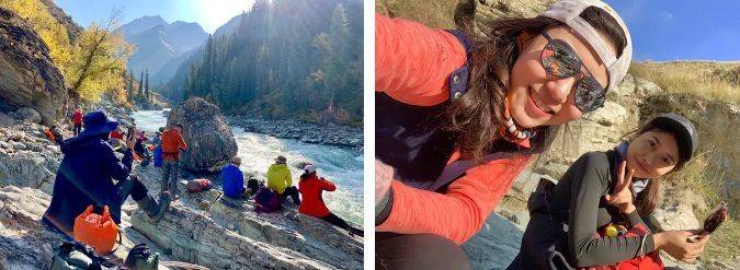 我真的挺喜欢过河,可能我天性喜欢水,而且感觉过河是个需要技巧的事情,还好玩,我说河没过够,山队说第一次听有人来乌孙了还说河没过够的,我虽然摔了不止一次,在河里差点被冲倒,但是过河真的是个有意思得事情,反正到了第四天,选择自己蹚河的女生就剩了我一个,可能我腿长吧。