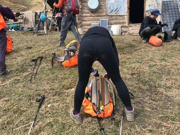再住一晚帐篷就要出山了,大家的情绪都有点亢奋,在这里,附送大家一个背包打包的技巧,这可是优秀领队的倾心传授,你们要记住哦~ 不常用的在下边,常用的在顶上,靠近背板的一侧放偏重物品,靠近外侧一圈放轻的。装填时把背包的两侧收纳带拉松,一遍装一遍往下使劲按,装完后把两侧收纳带收紧就OK,别忘了把上侧两条肩带拉紧,下边的调节带适当收紧,腰带卡到胯骨同高处包裹。