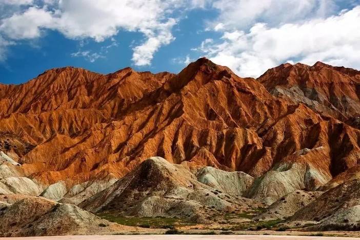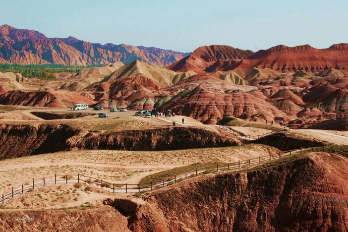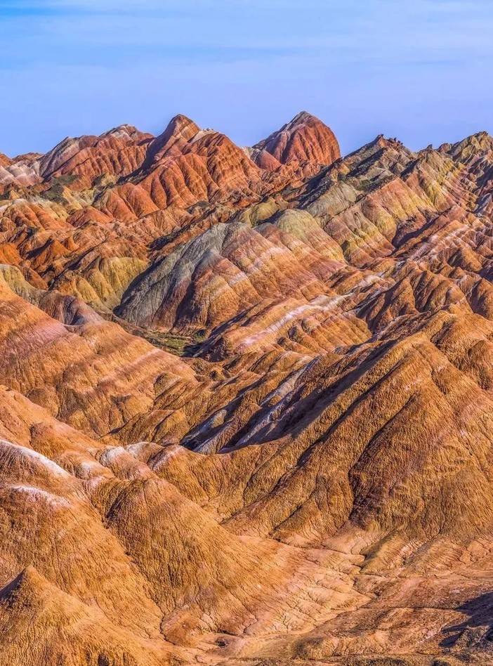 而张掖往东,陕西靖边的波浪谷;张掖往南,青海贵德阿什贡的七彩峰,与这些知名的丹霞比起来,也毫不逊色,一样有着“每至旦暮,彩霞赫炽,起自山谷,色若渥丹,灿如明霞”的美景。
