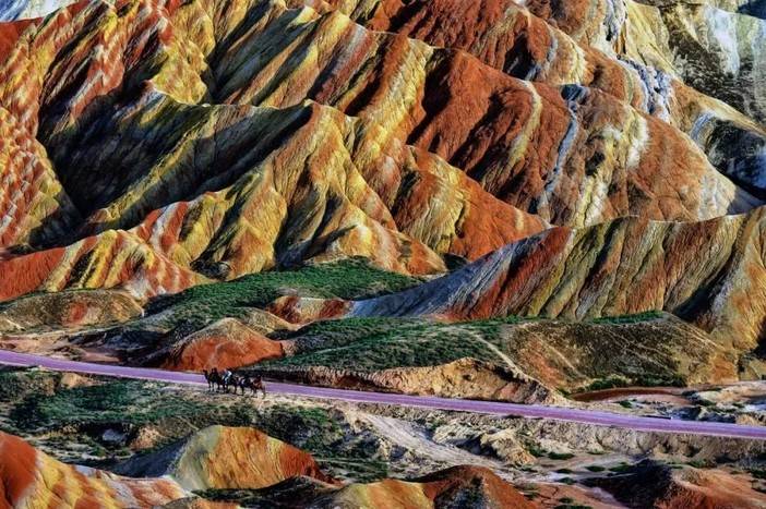 张掖最负盛名的七彩丹霞,因为张艺谋的一部《三枪拍案惊奇》更是名声大振,如今也成为了众多驴友必打卡的美景地。很多摄影发烧友镜头下绚烂多彩的丹霞大片也是出自于此。