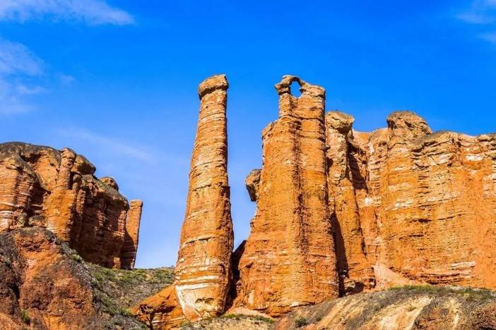 相较于七彩丹霞的色彩缤纷,冰沟丹霞则以“雄险神奇”而著称,被誉为“天下第一奇观”。它先后被《中国地理杂志》和美国《国家地理杂志》评为“中国最美的七大丹霞地貌”之一,以及 “世界十大神奇地理奇观”之一。