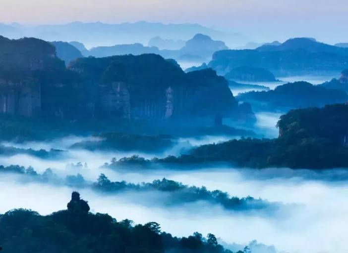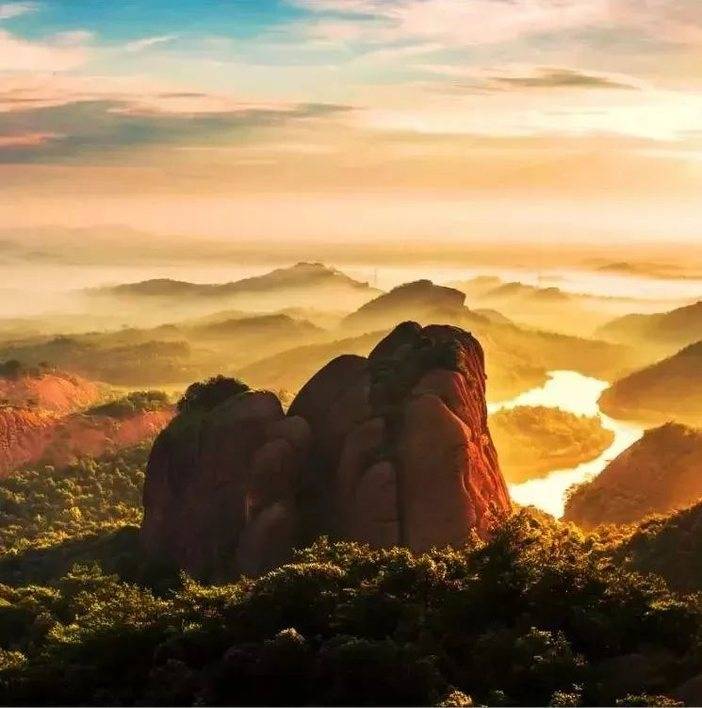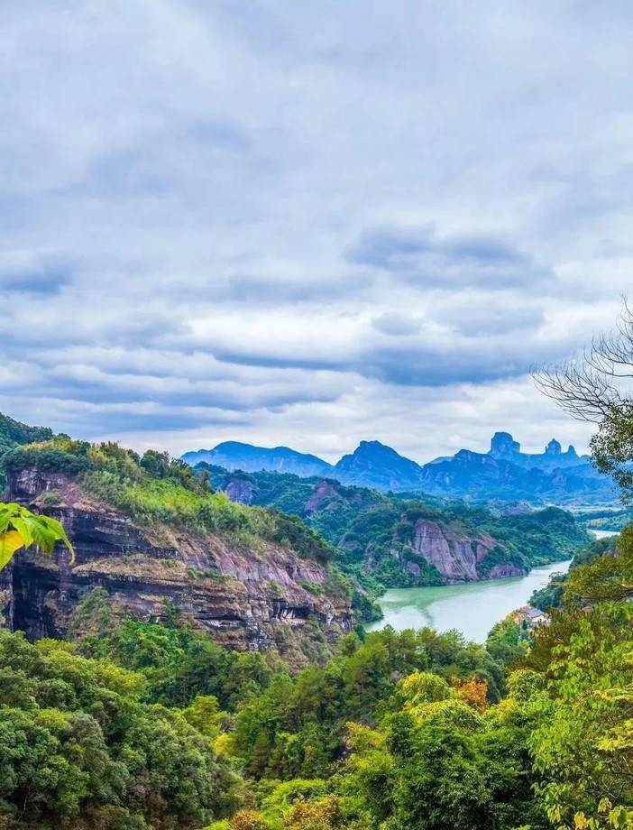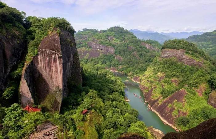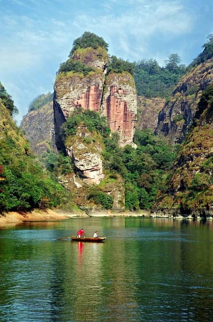 武夷山集山川河流于一体,清澈的九曲溪依山傍走,曲折萦回。高耸的天游峰屹立溪间,神奇的丹霞地貌千姿百态,真正的做到了人文与自然的和谐统一。