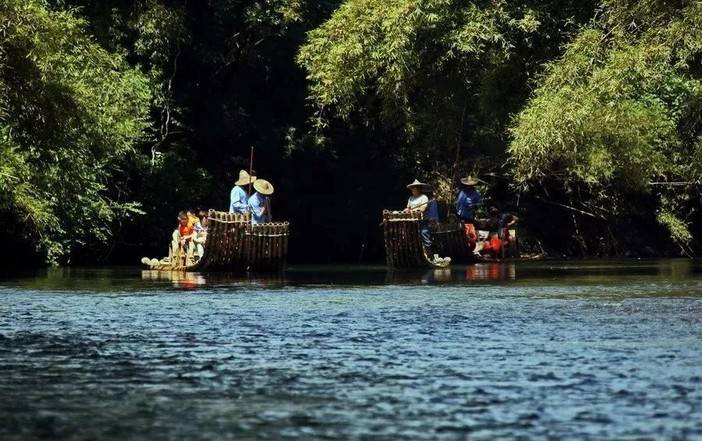 来到武夷山,最不可错过的便是九曲溪竹排漂流。游人乘坐古朴竹筏缓缓前行,安稳舒适,视野开阔,可见山景,能赏水色,仿佛坠入一幅宁静神话般的山水画中。