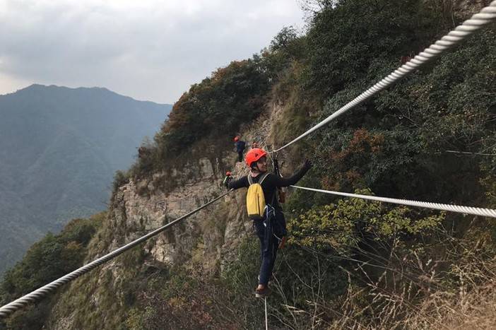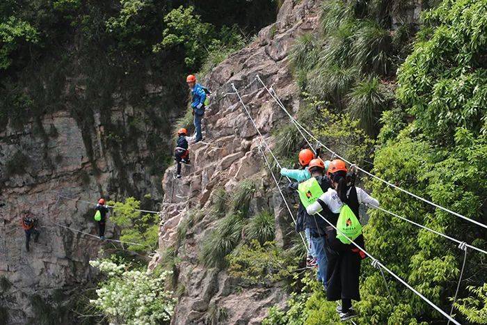 这里除了幽静美景,还有适合勇敢者挑战的刺激体验,630米高空、550米飞拉达、5次钢丝绳、2-3小时刺激欢乐绝壁穿越......