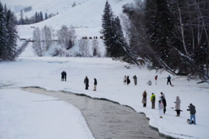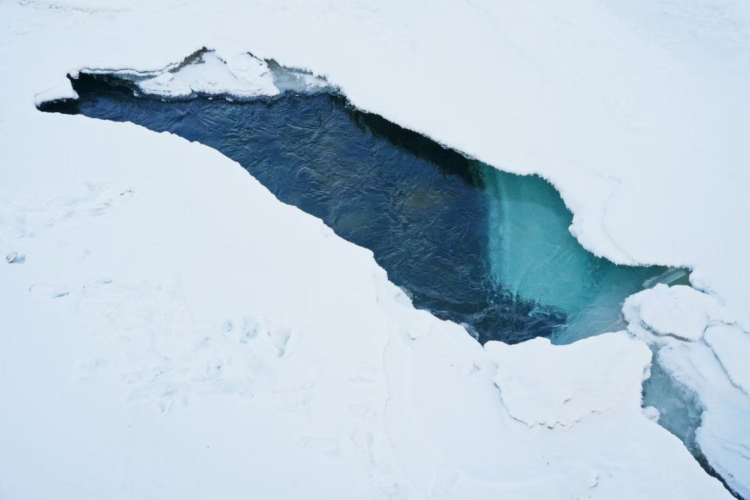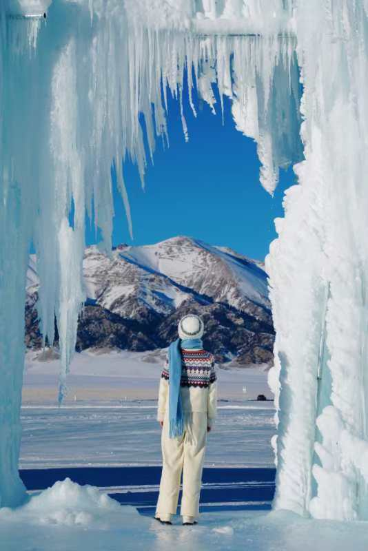 此外,与新疆的其他湖泊相比,赛里木湖不仅海拔高,而且风特别大,有时可以达到8—9级。呼啸的狂风,能将堆积在湖面上的积雪快速地清理干净,并且还能将湖面打磨得更光滑,提高冰层的透明度,为冰泡的展示提供“舞台”。