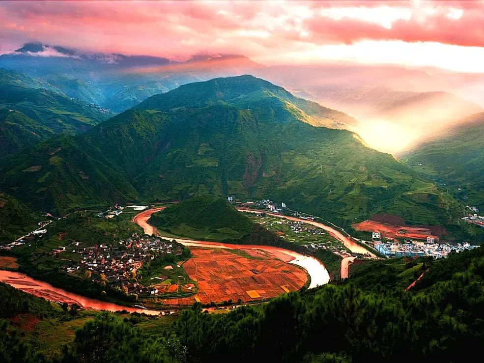 下午安顿好之后我们上山观看【太极锁水】全景图。在诺邓河和澜沧江支流沘比江交汇处,绕了一个“S”型的大湾子,形成了类似道教“太极图”的奇妙天然景观。