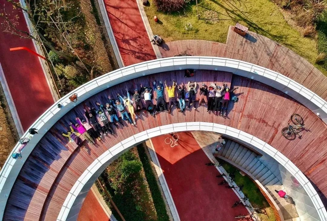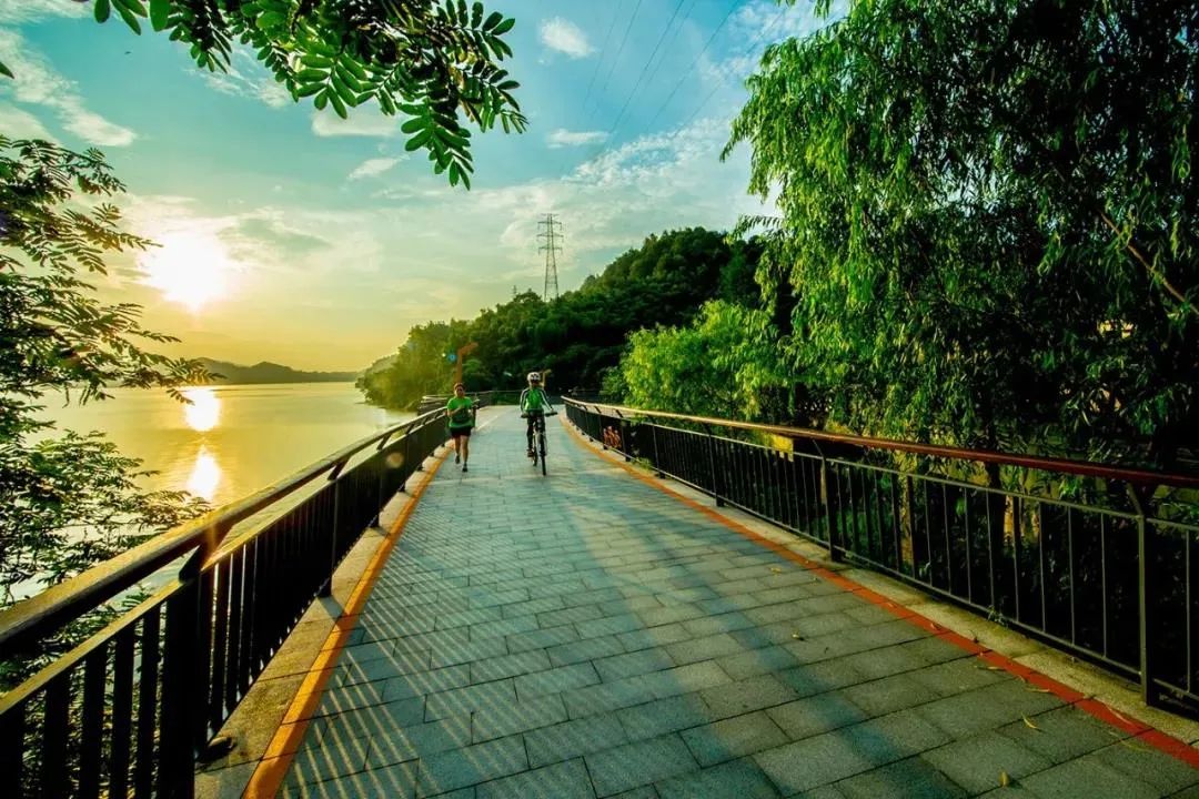 轻盈地转过一个个弯道,人影车影湖影交织骑行绿道之中,畅快自由,追风的人。