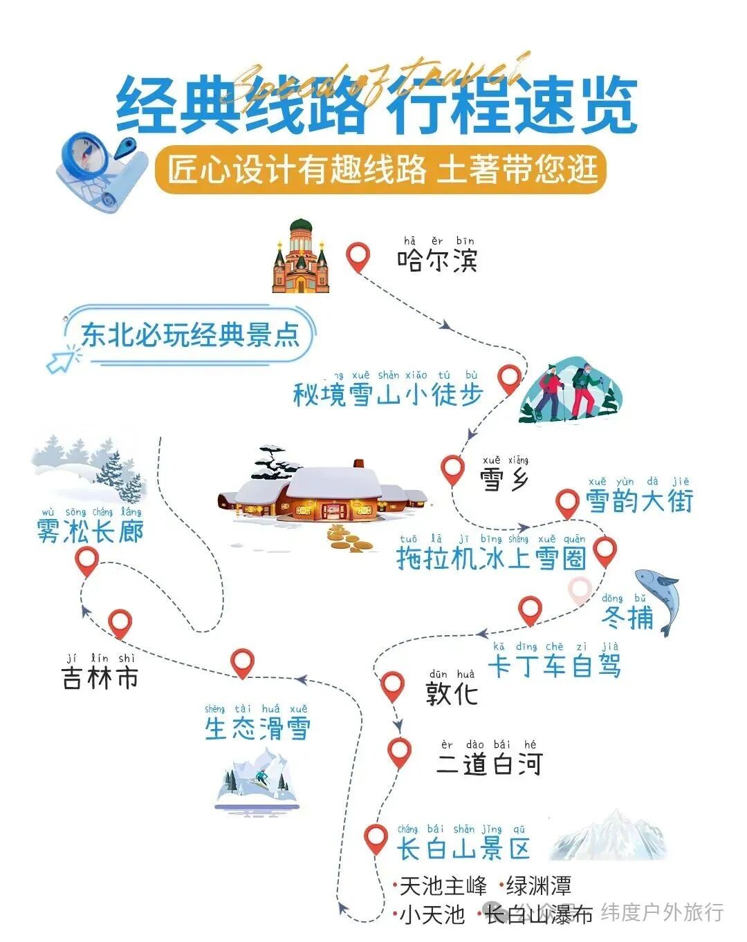 前往【秘境雪域小徒步】,这是一场深入林场、雪山中的大冒险,我们将穿越白雪覆盖的森林,登顶山峰,充分感受雪的魅力