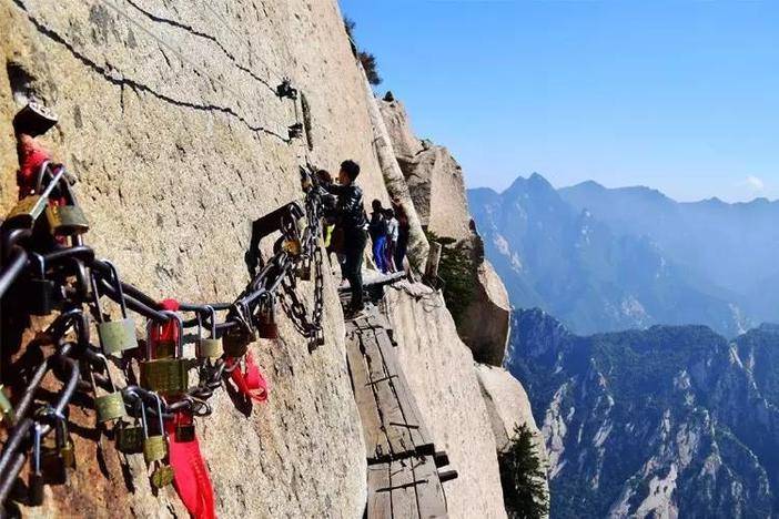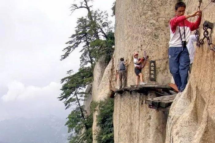 游人至此,面壁贴腹,屏气挪步,被誉为“华山第一天险”