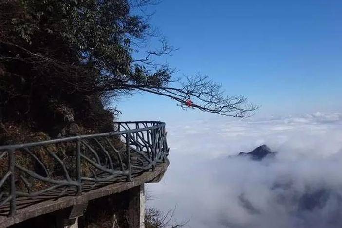 游人攀登上这些蜿蜒曲折的凌空栈道,不禁惊心动魄