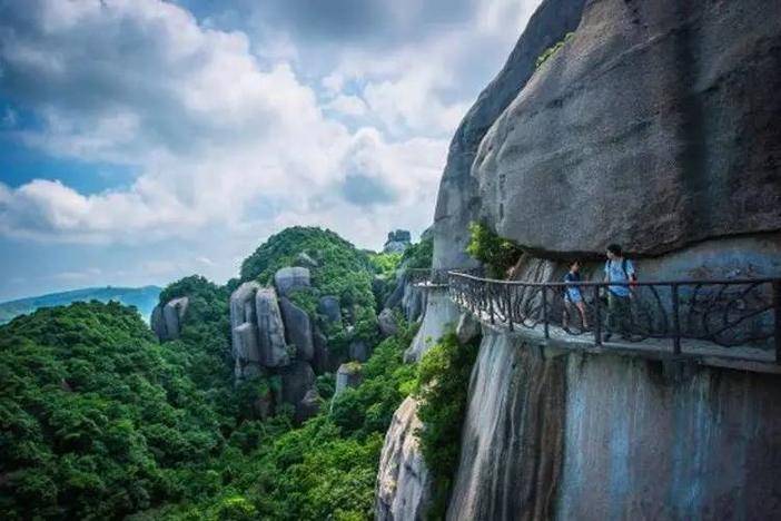 悬空的栈道横亘于悬崖峭壁上,如盘云的游龙