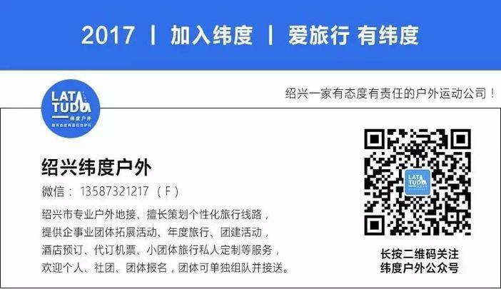 关注公众号:绍兴纬度户外 丨 QQ群:251074914 备注【纬度】