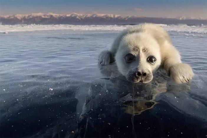 贝加尔湖上出没的淡水小海豹,天儿这么冷还一个劲儿用大双眼皮儿卖萌。它们只有小时候才是这样白乎乎的。