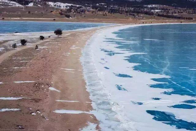 世界上最澄澈的水此刻结成了最纯粹的冰,在阳光的照射下,反射出纯净得不真实的蓝。
