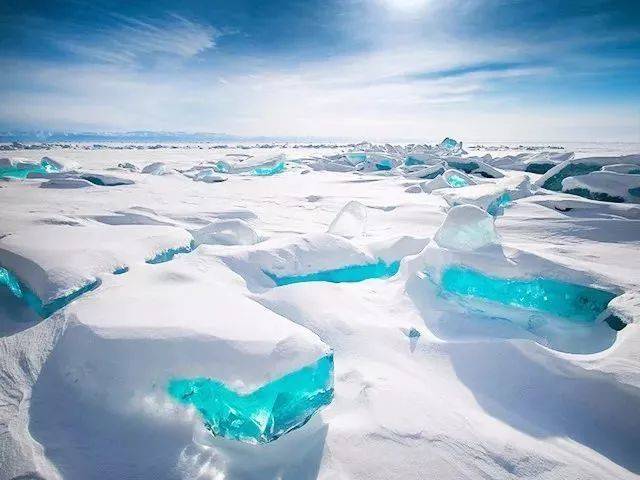 贝加尔湖湖底热能资源丰富,地壳运动频繁,使得冬季湖水基本接近夏天水温,并形成独特的冰峰景观。