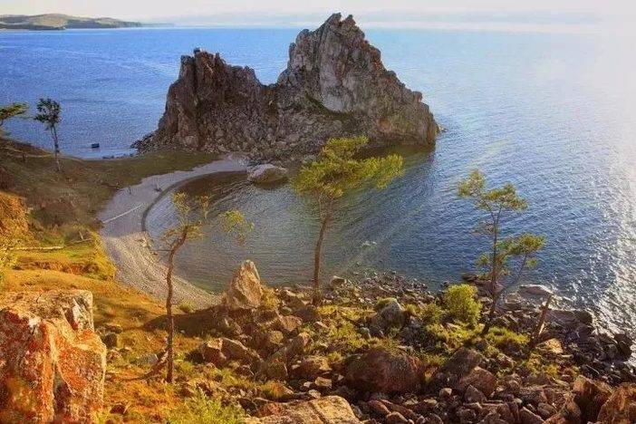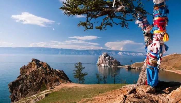 奥利洪岛能看到神秘的萨满岩石,萨满岩石是贝加尔湖畔一块缠满五彩经幡的巨大岩石,是萨满信仰中最重要的圣地之一。