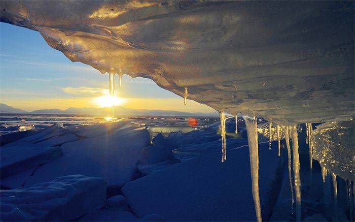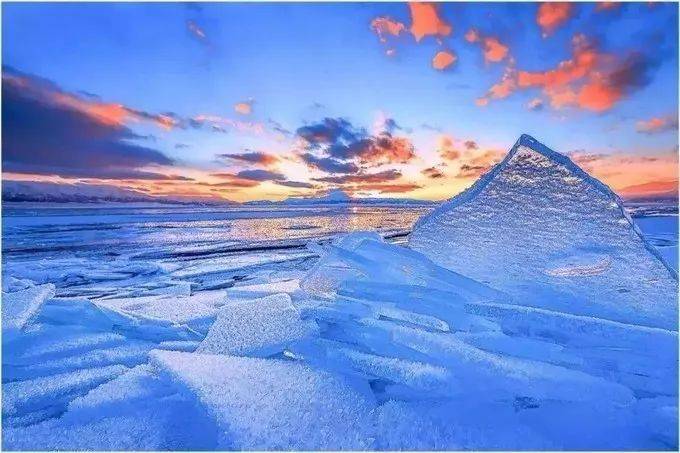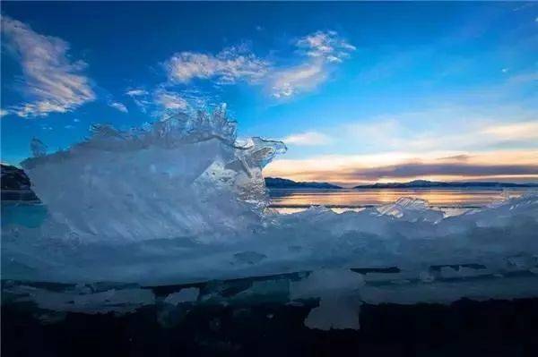 远处熊熊的“烈火”正在灼烧,随风舞动的彩云划出一道道美丽的风景;近处杂乱无章的冰块散落在人间,随“波”逐流的点缀在美丽的画卷中。仙境般的场景,美得一点都不像话,一定是最让人向往的生活。