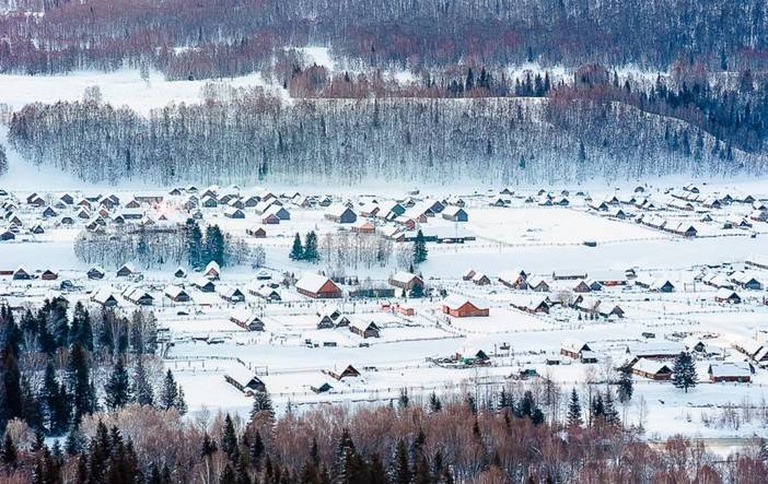 如果说秋天的喀纳斯就像一幅幅油画的话,那么冬天的禾木村,就像一幅水墨丹青!虽然和当初上《中国国家地理》杂志时那张照片比,下面的房子增加了不少,但那份恬静依旧!