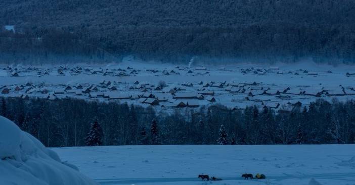 观景台有差不多2公里远,在零下三十几度摸黑出发不是个好选择!所以,马拉爬犁,是冬季禾木不错的代步工具!