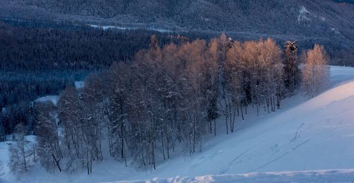 黄昏的时候,禾木又是一番新的面貌,夕阳照射下的雪色禾木,如一个梦境!