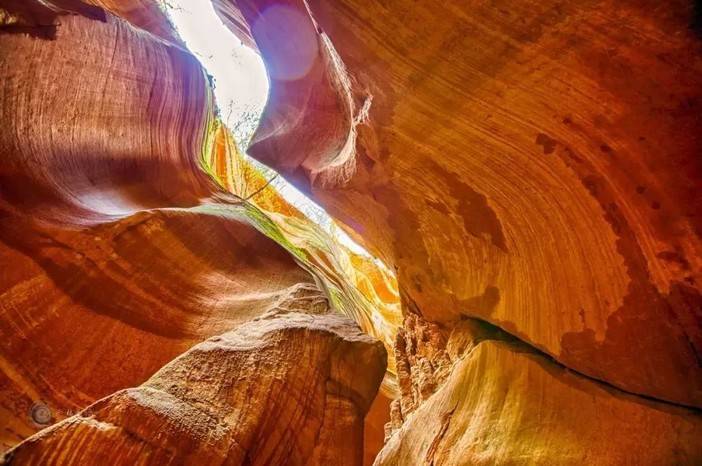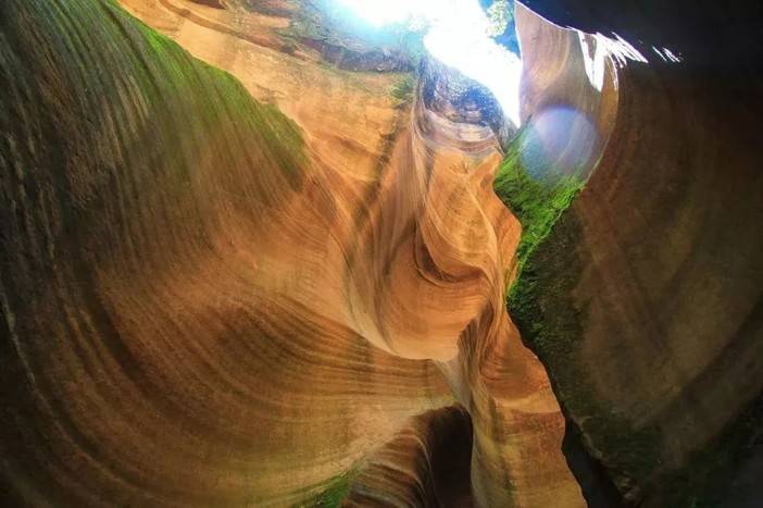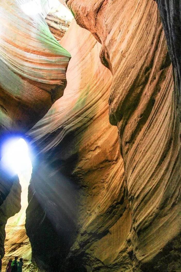 阳光透过狭窄的裂隙,在峡谷的凹凸岩壁上,不断折射而呈现出迷人的“天使之光”!