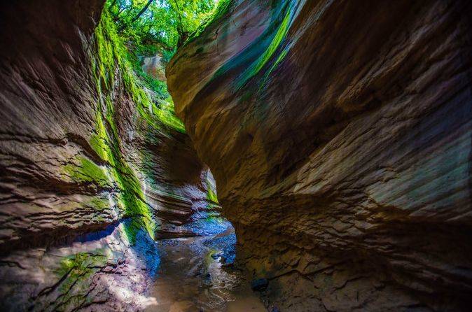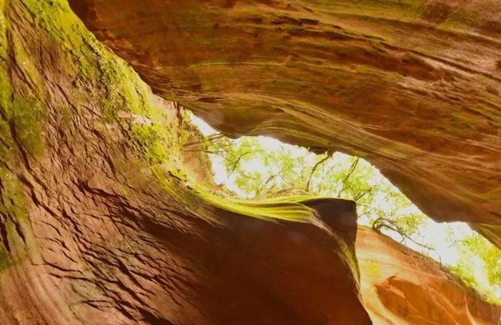 仰望头顶,是一小片蓝蓝的天,峡谷内像是画家涂了色彩的画!