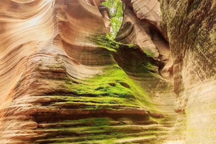 走进峡谷,峡壁凹凸不平、线条流畅,如同波浪从你身边划过!