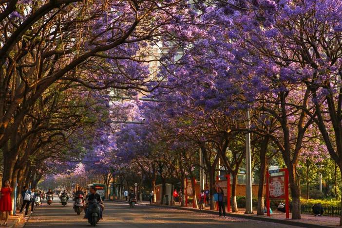 每年春夏之交的春城昆明,都会变成一个蓝紫色的童话世界,