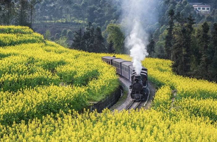 春天,我想去四川犍为,坐一回穿越花海的“绝版”蒸汽小火车。