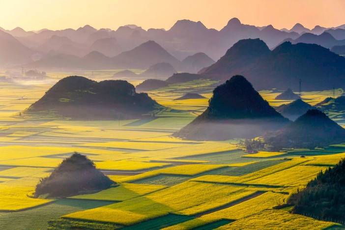 斑驳的铁轨、烟囱喷薄而出的蒸汽,穿行于一望无际的黄金花海中,一浪浪回了18世纪,这该是春天最有仪式感的过法了吧?