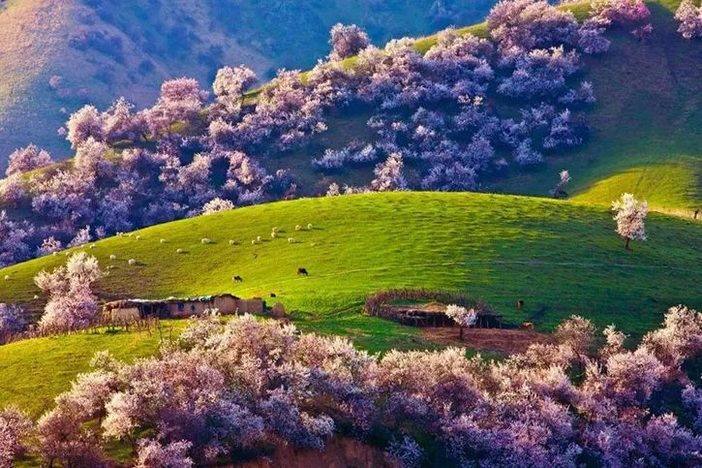 春天,我想去新疆伊犁,奔跑在牛羊成群的山坡上,淋一场杏花雨。