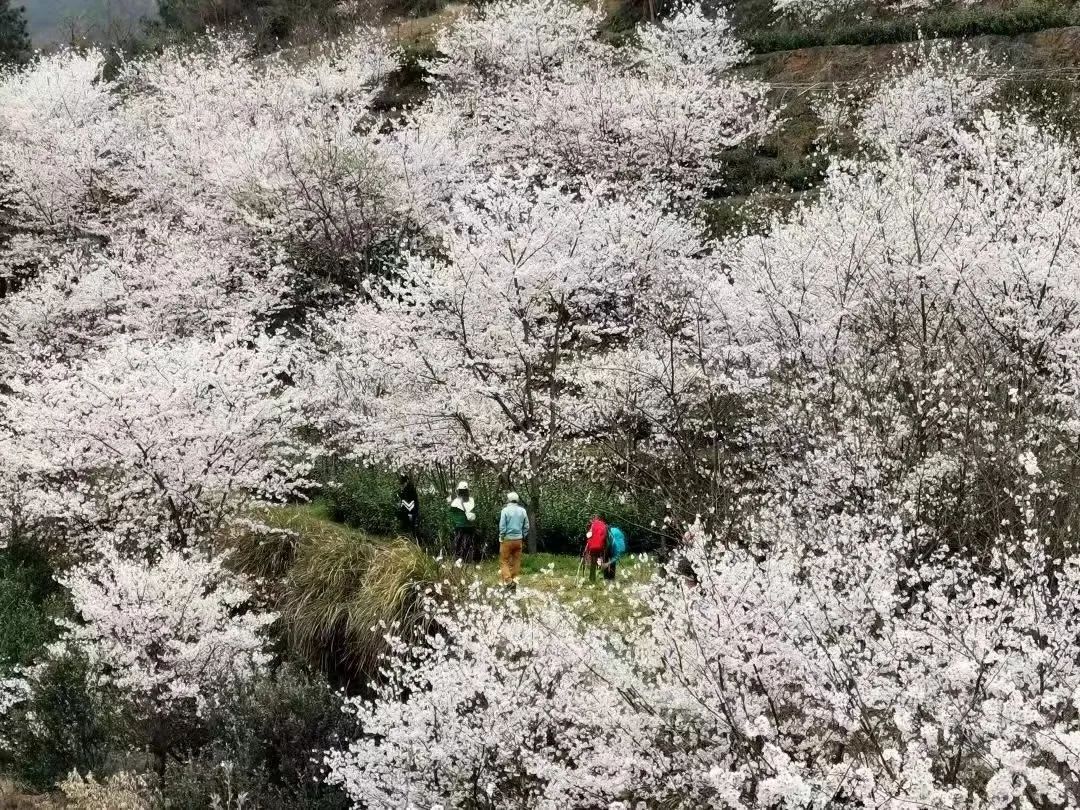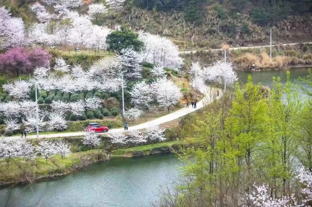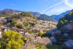 清潭坑的樱花最是热烈,延绵几里,点缀在青山碧水间,粉红洁白相映成趣,蔚为壮观,这一带放眼皆是樱花烂漫,穿行于樱花树下,流连不忍离去(如果不想徒步,也可以自由拍照打卡,下午返回大巴集合就行)