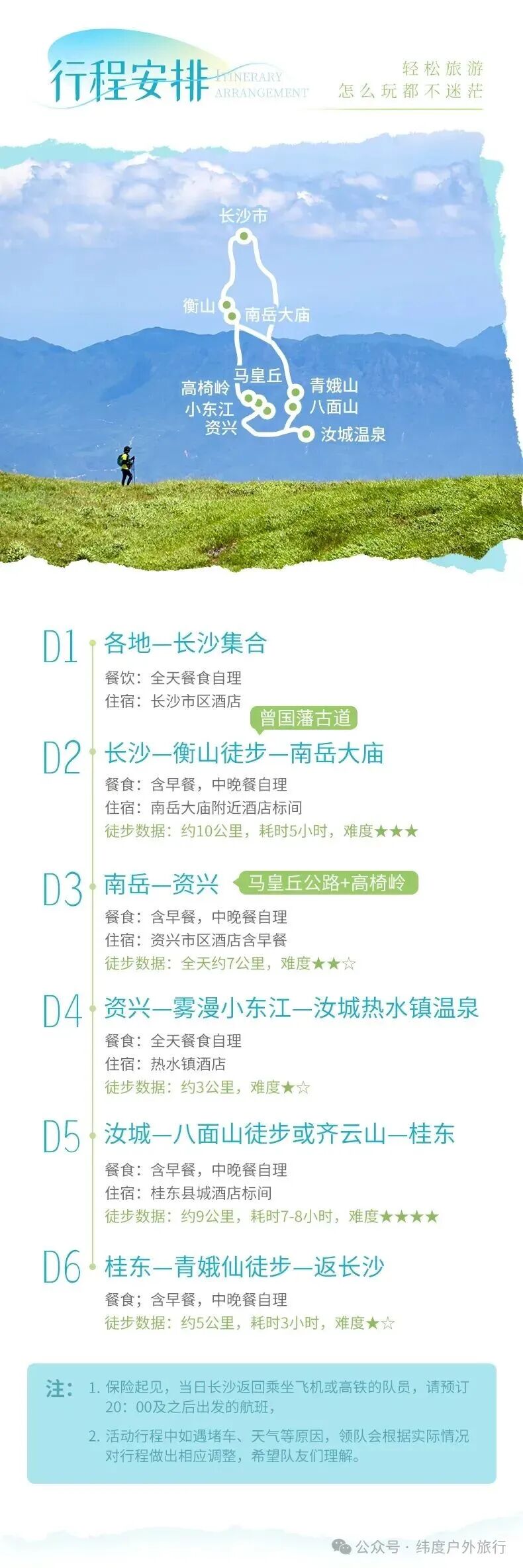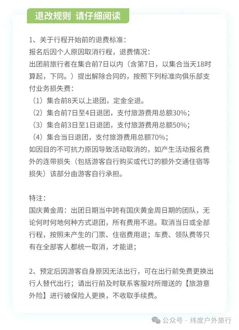 2. 活动行程中如遇堵车、天气等原因,领队会根据实际情况对行程做出相应调整,希望队友们理解。