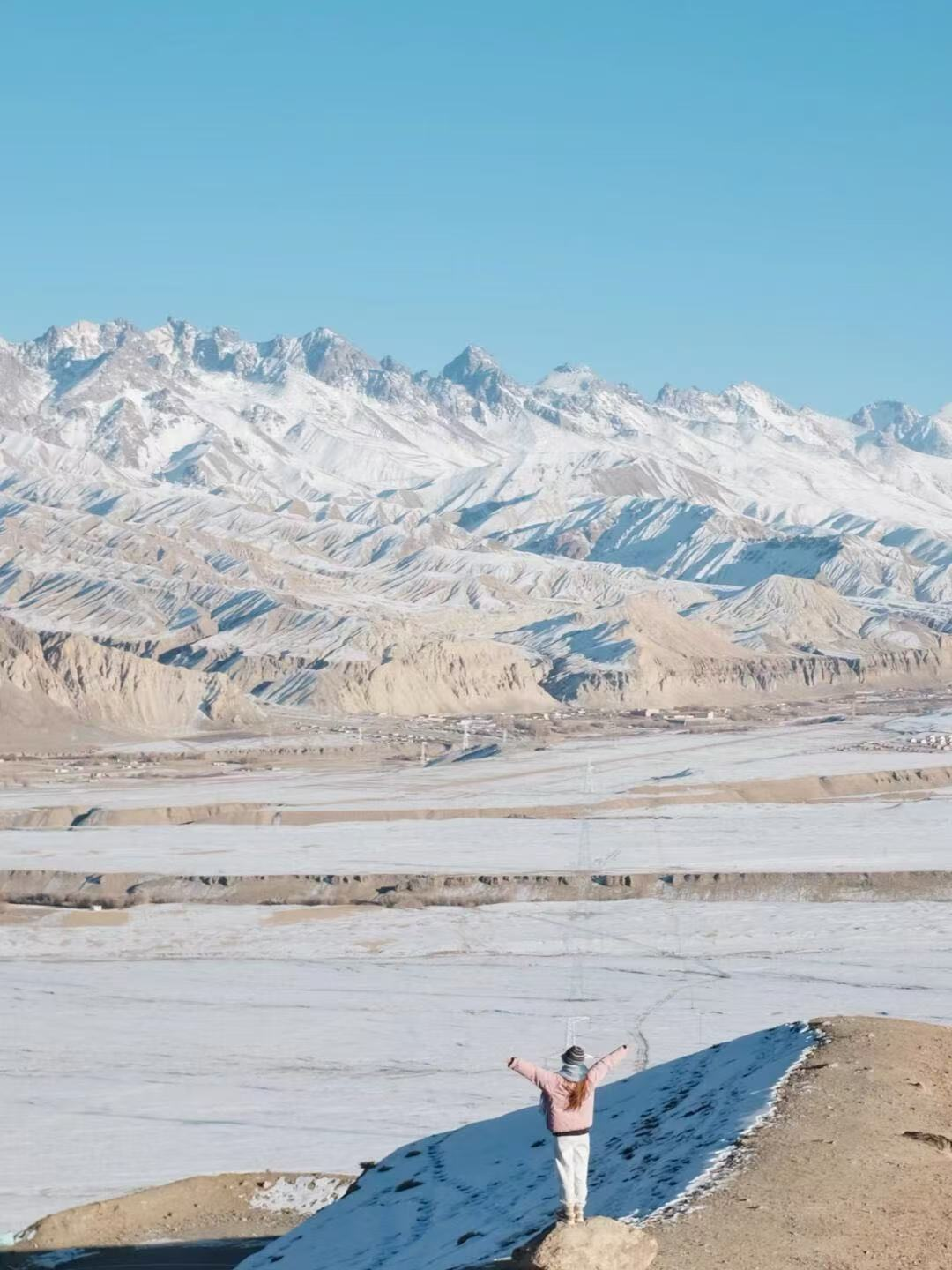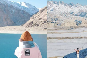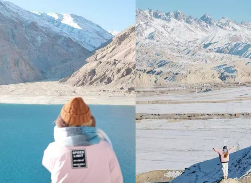 之后抵达白沙湖,白沙湖是慕士塔格峰冰川雪水流经布伦口形成的湖泊,因湖面西侧的山上有白沙而得名。冬日的白沙湖呈现出别样美景。未结冰的湖面在微风轻拂后,泛起涟漪,而已经结冰的湖面像是将白云拓印在了冰面,构成了一幅美丽的画卷。首先我们抵达白沙湖北岸,这里人少景色开阔,有属于你的专属机位。之后抵达白沙湖南岸,继续创作。