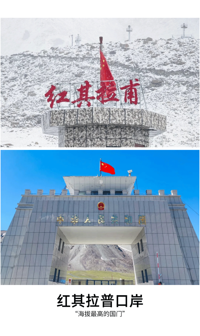 之后前往红其拉甫。红其拉甫国门是祖国的西大门,阳光下的国门雄伟壮观,是屹立在帕米尔高原的世界最高国门。这里位于中国与巴基斯坦的交界处,是中国通往巴基斯坦唯一的陆路进出境通道。中巴7号界碑是中巴公路314国道中方境内的终点。它不仅是国界的象征,也是中巴友谊的见证,更承载着无数戍边人对国家的忠诚奉献。