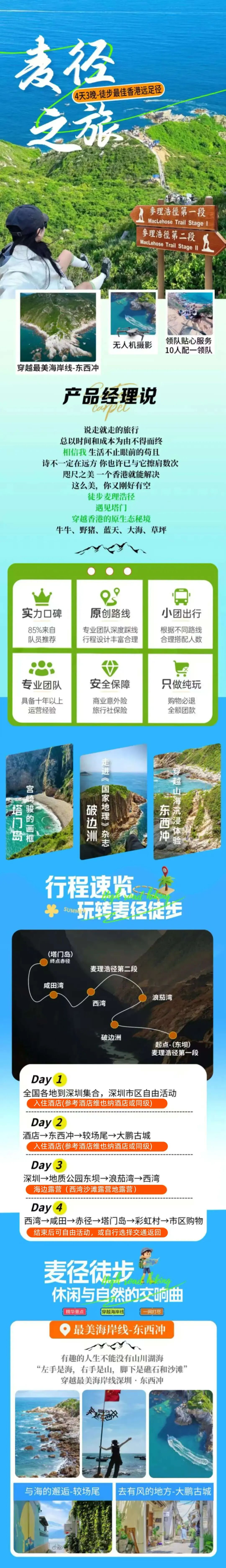 5)住宿:深圳市区携程四钻酒店住宿两晚,香港西湾营地露营一晚(含帐篷防潮垫睡袋枕头,默认2人一顶帐篷防潮垫,每人一个睡袋枕头,如需单人住宿需补100元/人);