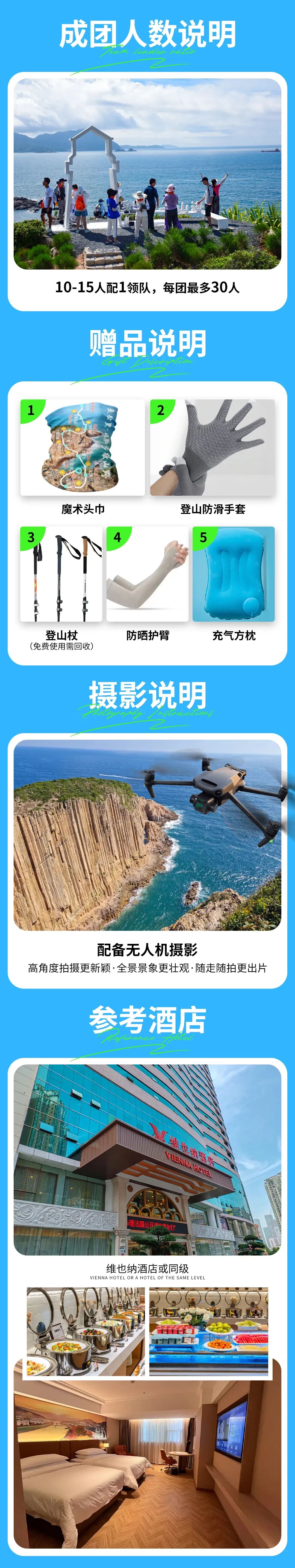 早餐后出发,前往被《国家地理杂志》评为最美的十大海岸线之一的东西冲徒步起点【东涌码头】,这是一条将山海、礁石与自然完美结合的穿越路线。一半山路,一半海岸线。全程徒步景观都值得停下脚步来欣赏、拍照感受,给你无敌海景。
