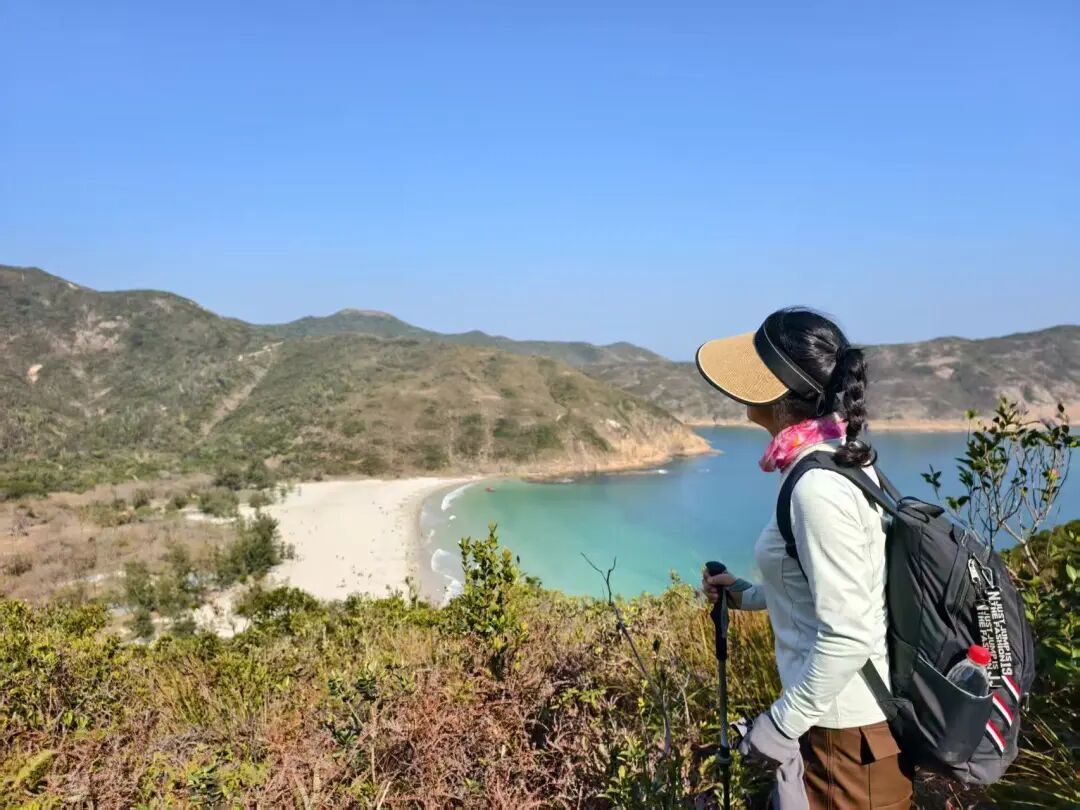 中午打卡麦径必去的景点,灵魂封面东坝。浏览地质公园园碑、六角岩柱、破边洲、标尖角,沿麦理浩径开始徒步经过【浪茄湾】,海浪侵蚀力量较弱,拥有可以媲美斐济群岛的海滩绵绵细沙,海水清澈,徒步到达【西湾露营】。