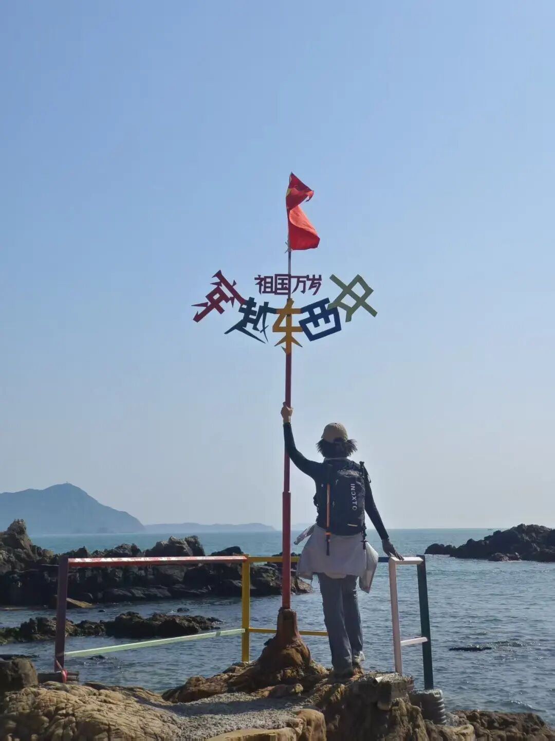 下午沿海岸线攀越山崖、踏过礁石,向西冲挺进,途中有红旗标志打卡点,到达天文台网红悬崖栈道上,在高点俯瞰这开阔的海岸线。随后跟着领队下山到达【西涌沙滩】