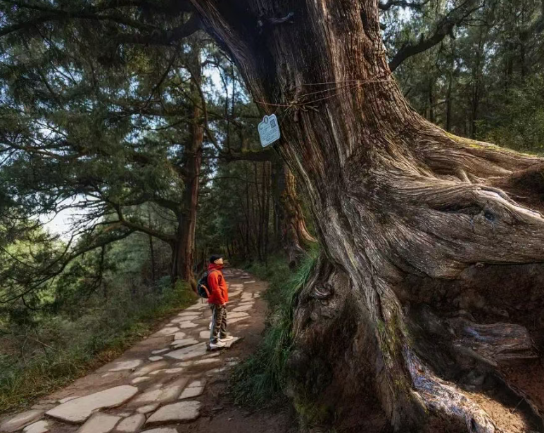 都说光雾山的历史,是一部镌刻在米仓古道上的文明史。与金牛道、荔枝道并称“中国三大古蜀道”的【米仓古道】是中国乃至世界交通史上的活化石。沿着古道慢慢游览,低头找一找青石板上的马蹄印,这是当年盐商牵着马日复一日走过的痕迹。走累了在路边的石凳上休息,指尖抚过历经岁月的石板,红叶飘落在蜿蜒的青石板路上,立刻就能感受到一种幽深的古意,仿佛置身于一幅流动的历史画卷之中。