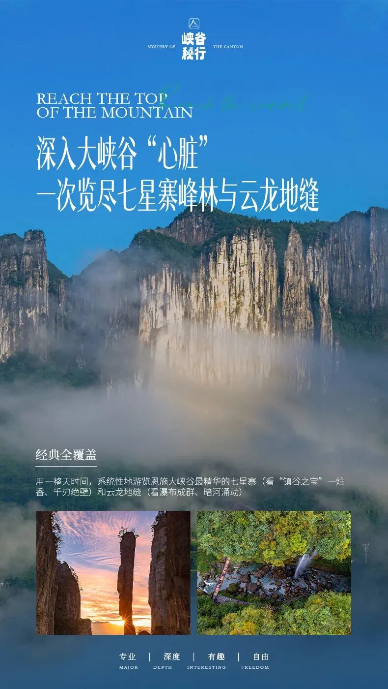 早餐后乘车前往【恩施大峡谷】(游玩约5h),进入景区后,先乘坐观光车前往七星寨,七星寨景区由、大龙门、中龙门、小龙门及绝壁组成,景区主要包括地缝、绝壁、奇峰、峡谷等地质景观,是整个清江大断裂景观的精华。