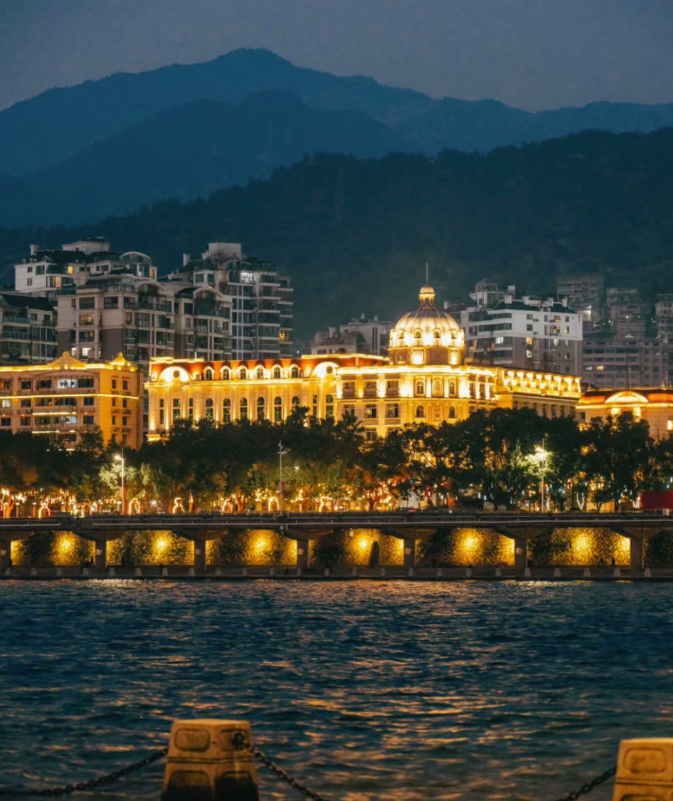 夜幕降临,在瓯江边,建筑的灯光亮起,倒映在江面上,感受“异国风情”的夜景,20点前往酒店入住。