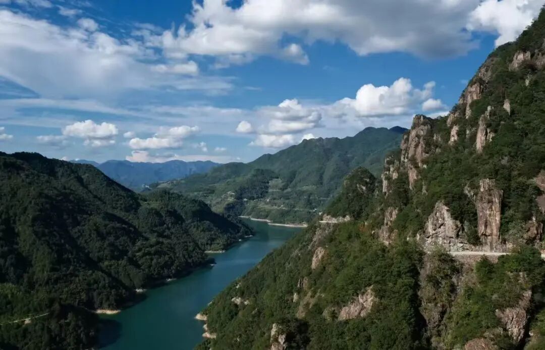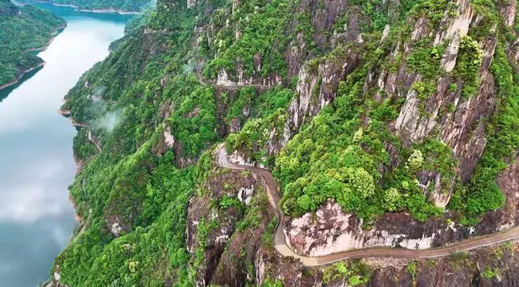 穿行在壁立千仞的悬崖间,沿途奇峰叠翠、云雾缥缈、怪石巉岩。右手边是波澜壮阔的湖景,左手边是惊险刺激的挂壁,如此景致在华东地区极为罕见,让人惊叹不已。