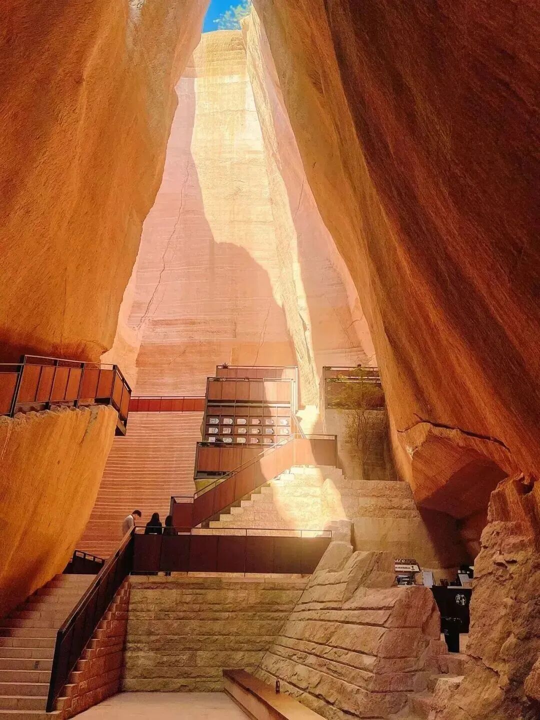 净高38米、深度约50米,是顶部完全开放的露天空间,天气晴朗时,太阳光从书房顶部石缝中洒落。